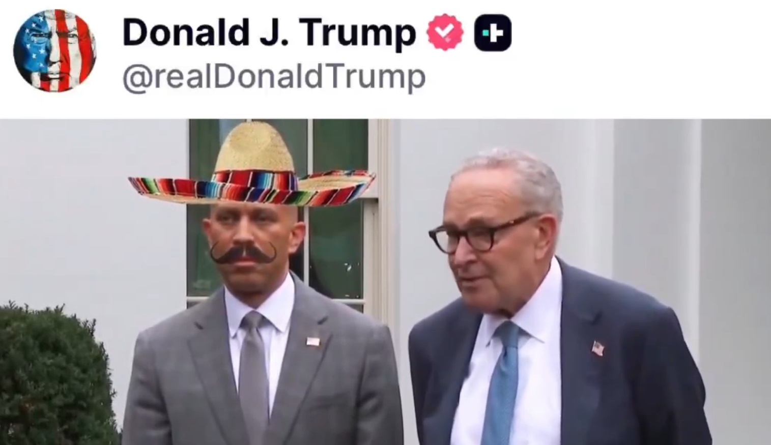 Conform The Guardian, unul dintre clipuri îl arată pe liderul democrat din Camera Reprezentanților, Hakeem Jeffries, cu mustață falsă și sombrero, în timp ce pe fundal rulează muzică mariachi.