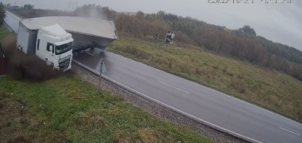 Accident grav în Iași. TIR răsturnat peste un autoturism. Momentul impactului