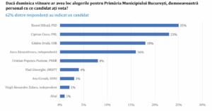 La capitolul intenție de vot, 62% dintre respondenți au menționat un candidat preferat pentru funcția de primar general.