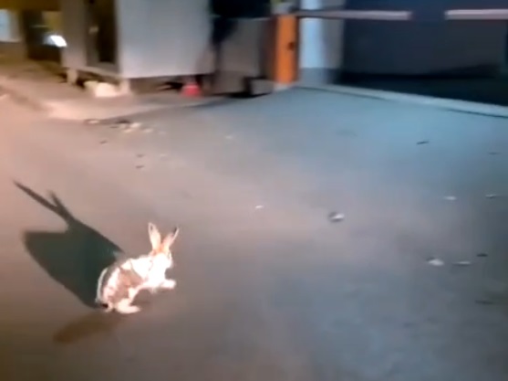 La miezul nopții, micuțul urecheat a fost observat de jandarmi sub o mașină, încolțit de doi câini. Jandarmii au oprit imediat, au gonit câinii și au încercat să-l prindă pe iepure.