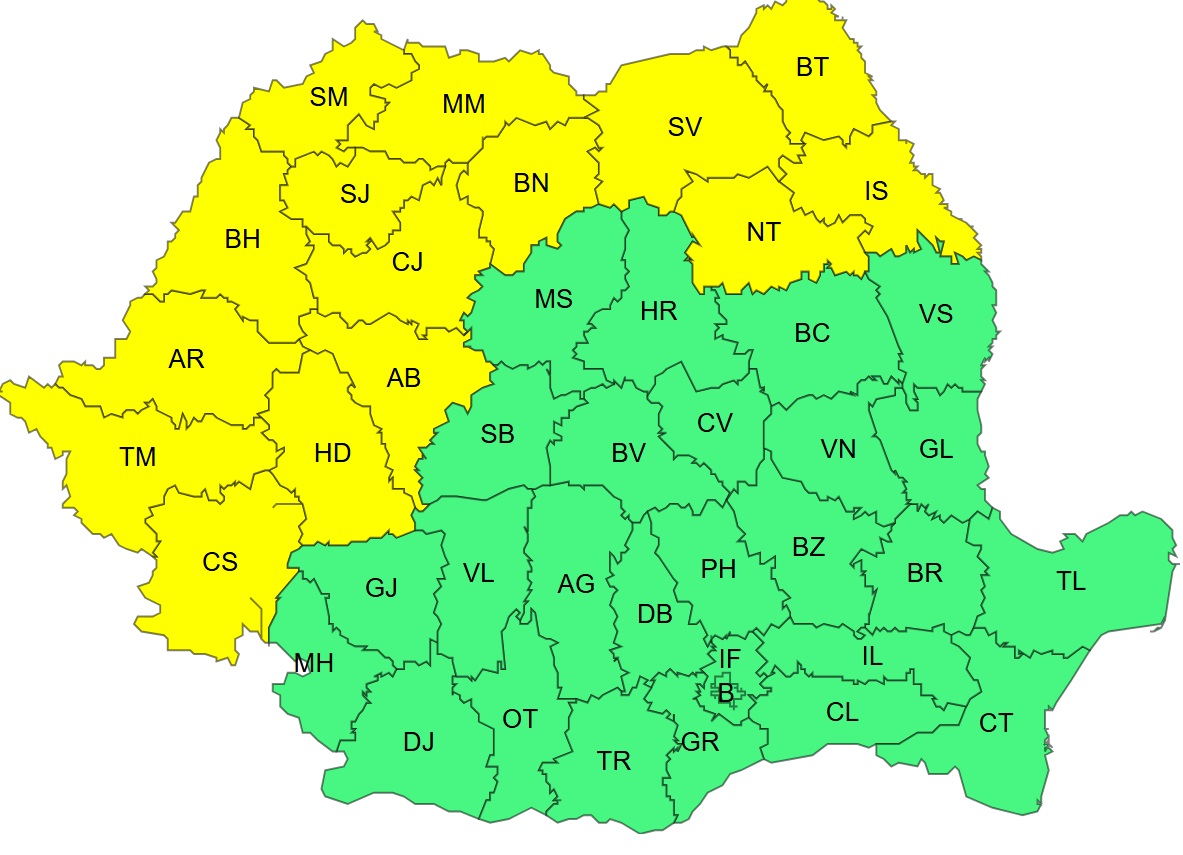 Potrivit meteorologilor, rafalele de vânt pot atinge viteze de 90 până la 120 km/h, fenomen care poate crea probleme în special în zona crestelor montane.