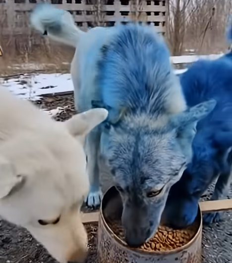 Imaginile cu animalele au făcut rapid înconjurul lumii, deoarece blana lor albastră intensă a atras atenția publicului. Organizația Dogs of Chernobyl a distribuit videoclipuri pe rețelele sociale, stârnind îngrijorare printre spectatori.