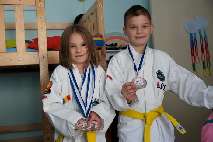 Marian și Ana fac taekwon-do, iar de două ori pe săptămână vin la Sibiu pentru antrenamente. Au deja medalii de aur, argint și bronz, câștigate la probe individuale sau făcând echipă cu colegii de la Clubul „Puma”. „Nu-mi este greu să-i duc la antrenamente, copiii au nevoie de sport, de disciplină și spirit de echipă”, spune preotul Rareș Dușescu, devenit și șofer pe microbuzul familiei.