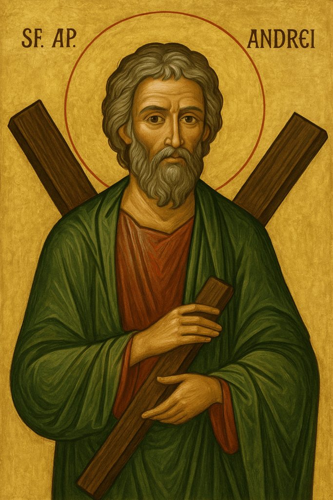 Sfântul Andrei Andrei a fost originar din Betsaida, un mic orășel din Galileea. Numele său derivă din cuvântul grecesc „Andreas”, care se traduce prin „viteaz” sau „bărbătesc”.