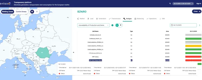 Această reducere a producției de la Brazi apare notificată și pe platforma europeană dedicată energiei, ENTSO-E.