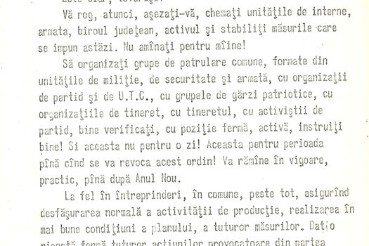În document apar referiri directe la ordinul de a se trage în manifestanți, dat de Nicolae Ceaușescu înainte de plecarea sa în Iran, precum și la poziția generalului Vasile Milea față de această dispoziție.