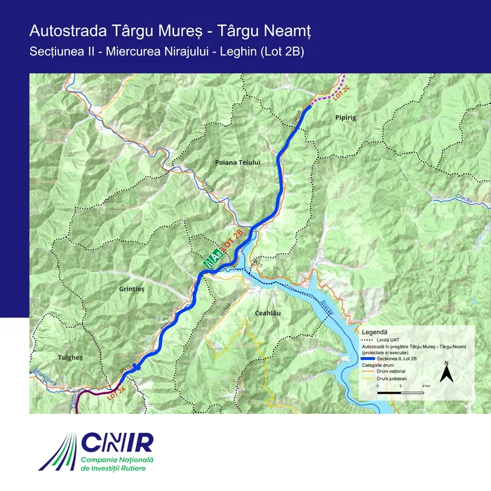 Lotul 2B se desfășoară în județul Neamț și include 60 de poduri și viaducte (cel mai lung fiind peste râul Bistrița-1275 metri), respectiv 16 tuneluri.