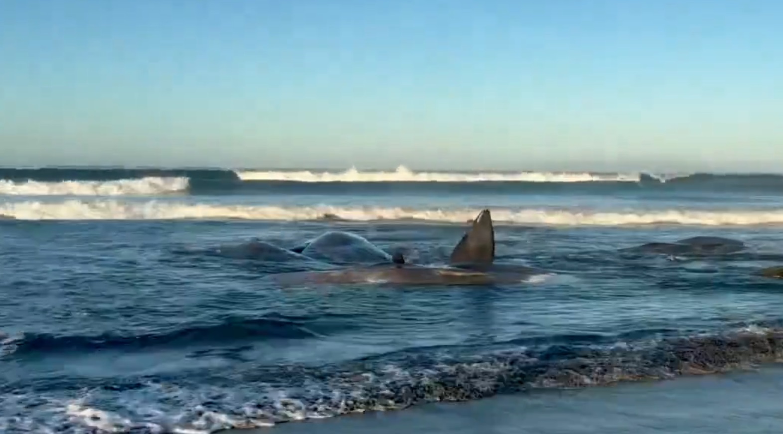 Eșuările în masă au loc în mod regulat la Farewell Spit, situat în vârful nordic al Insulei de Sud.