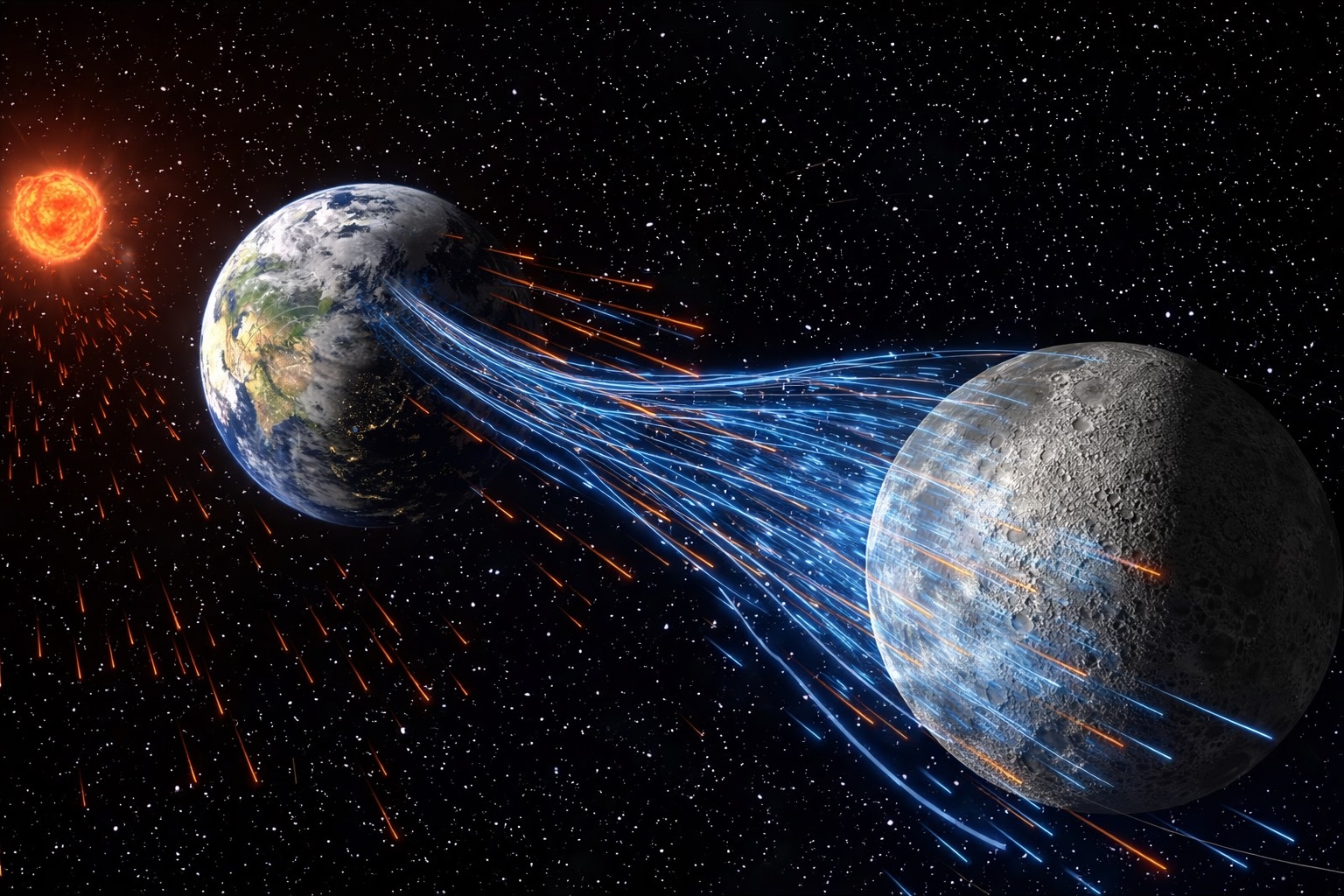 Simulările computerizate arată că magnetosfera – „scutul” magnetic al planetei – direcționează particule din atmosfera terestră către Lună. Se întâmplă în special atunci când aceasta trece prin „coada magnetică” a Pământului, fenomen ce are loc în faza de Lună plină.