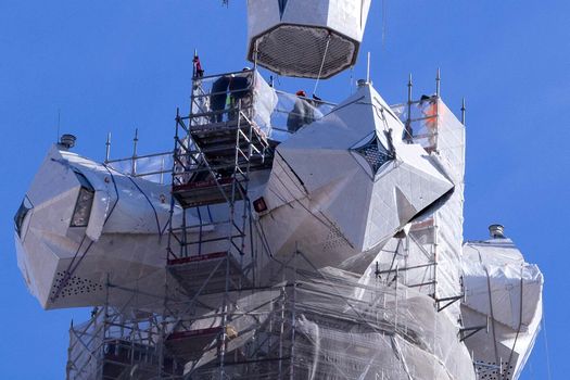 Timp de câteva zile, vântul a fost prea puternic pentru ca echipele de muncitori să poată lucra. Totuși, partea superioară a crucii de oțel și sticlă, înaltă de 17 metri, a fost ridicată în poziție vineri, la ora 11:00.