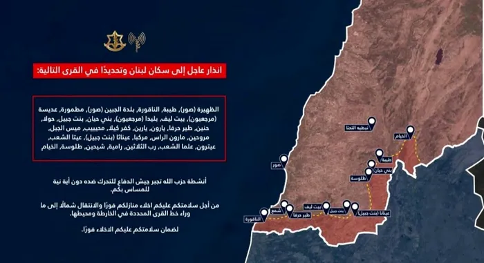 IDF emite o avertizare de evacuare pentru mai multe sate din sudul Libanului