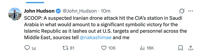 Deși atacul reprezintă o mică lovitură pentru prezența agenției de spionaj în Arabia Saudită, acesta ar putea avea o semnificație pentru un regim aflat în dificultate, care a considerat mult timp CIA drept dușmanul său suprem, având în vedere sprijinul secret al Washingtonului pentru lovitura de stat militară din 1953 care l-a înlăturat din funcție pe prim-ministrul ales al Iranului, arată Post.