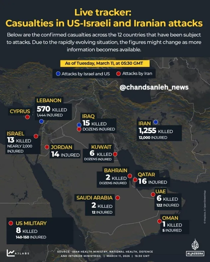 Victime în atacurile dintre SUA și Israel și Iran (la 11 martie 2026):