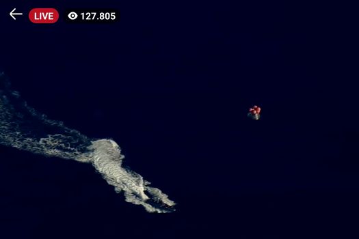 Capsula a lansat aproape o duzină de parașute pentru a-și ușura coborârea, încetinind în siguranță nava spațială de 21.000 de livre de la viteze mari la aproximativ 32.187 de km/h pentru aterizare.