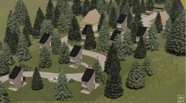 Ansamblul propus include 12 pavilioane pentru cazare turistică și două clădiri pentru alimentație publică, destinate servirii mesei.